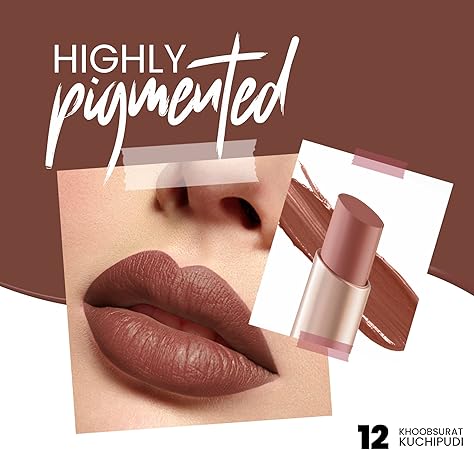 MARS Creamy Matte Long Lasting Lipstick for Women | Creamy Lipstick | Single Swipe Application | Smooth & Light Weight (3.2 gm) (12-Khoobsurat Kuchipudi)